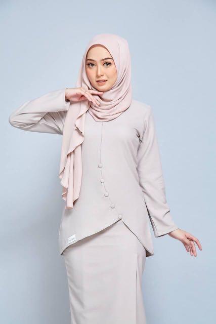 Elsa Mini Kurung Light Grey Women S Fashion Muslimah Fashion Baju Kurung Sets On Carousell