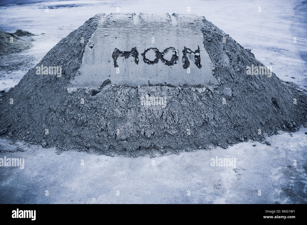 On Gray Moon Sand Is Inscribed By Moon Copy Space On Right Is Plant Germ Extraction Minerals On Moon Colonization Life On Moon Stock Photo Alamy